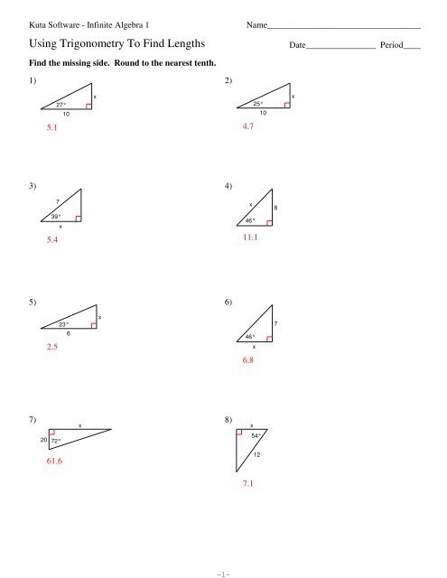 Kuta Software Infinite Algebra 1 Using Trigonometry To Find Lengths